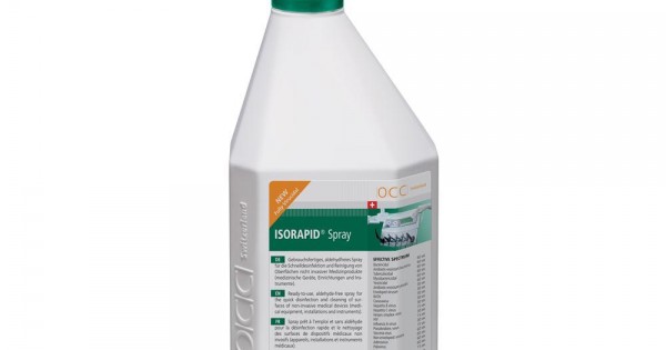 ISORAPID Spray – dezinfectant lichid gata preparat, cu actiune rapida, fara aldehide, cu un continut redus de alcool si un spectru larg de dezinfectare, utilizat prin pulverizare sau stergere, destinat dezinfectiei suprafetelor (inclusiv unituri dentare, obiecte de inventar, etc.), instrumentarului mic si aparaturii medicale din cabinetele stomatologice.